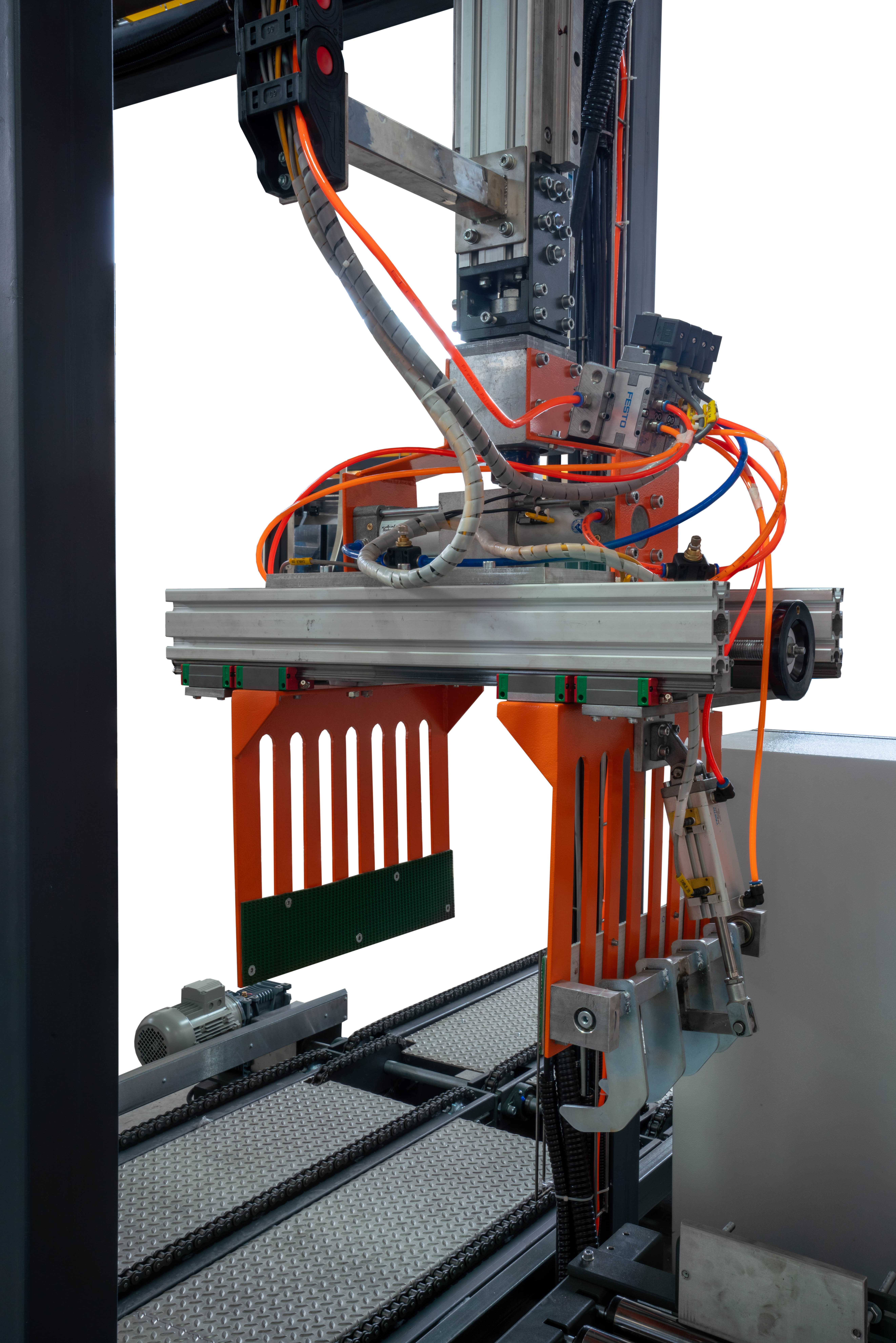 این دستگاه برای چیدمان اتوماتیک و هوشمند بسته های محصول در انتهای خطوط تولید کارخانجات مختلف استفاده می شود. قابلیت ویژه ی این دستگاه، استفاده از یک گریپر با مکانیزم PICK & PLACE بوده و امکان چیدمان دقیق کارتن های محصول روی پالت را فراهم می سازد. به کمک این دستگاه در کارخانجاتی که دارای چند خطوط تولید با بسته بندی های متنوع محصول هستند، یک کانوایر اصلی، محصول خطوط مختلف را جمع آوری نموده و به پالتایزر تحویل می نماید.