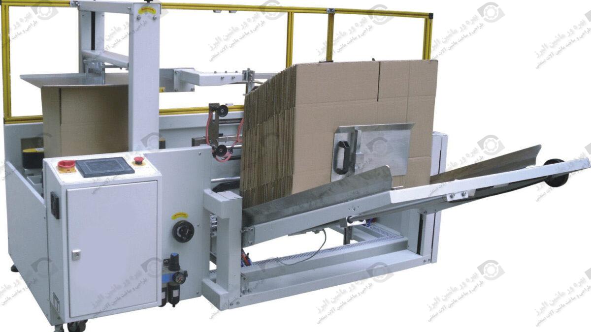 CF-15 Carton Forming Machine (Case Erecting Machine) is a medium speed box forming and bottom sealing machine which is controlled by PLC and operated from HMI system. Flat cartons are placed in the magazine of the machine by an operator before it is switched on. The machine automatically picks one flat case from the magazine and erects it onto the conveyor. It then seals the flaps on one side of the case, leaving one end open for filling. The machine can support 15 boxes/min.
