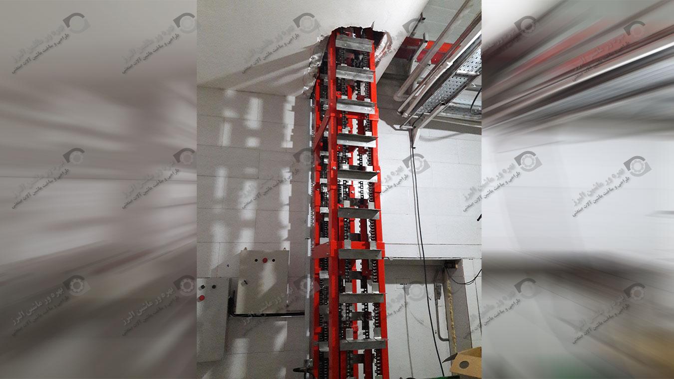 - خروجی بالابر مجهز به کانوایر بوده و محصول را از داخل طبقات کانوایر خارج می نماید.