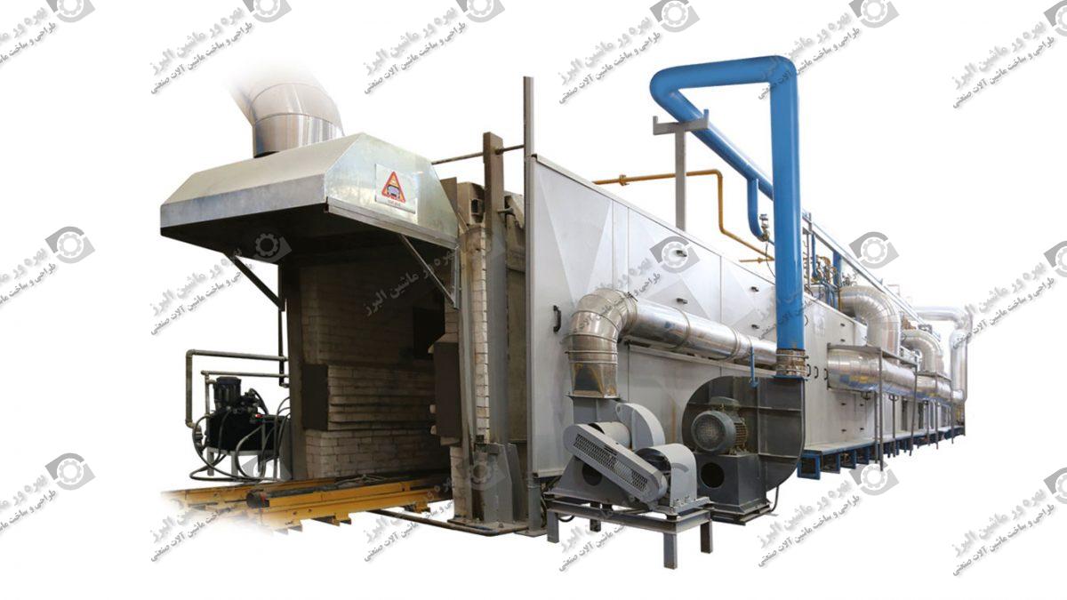 طول و دهانه کوره تونل با توجه به فرایند حرارتی تعریف شده متفاوت بوده و به ابعاد مورد نیاز قابل ارائه است. در این کوره محصول توسط واگن های ویژه به داخل دستگاه انتقال می یابد. کوره دارای یک استراکچر فولادی و بدنه دو جداره از جنس آجرهای نسوز ، عایق حرارتی با ضخامت مناسب (الیاف سرامیک) و کاور یا بدنه نمای کوره است. کاور یا نمای کوره نیز از درب های کشوئی فولادی که امکان دسترسی و بازدید بدنه را تسهیل می نماید ساخته شده است.